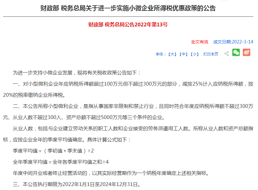 而100-300万的部分从19年13号公告减半再到2022年13号再减半,目前实现了5%的税负率,而不符合小型微利企业的一般企业是25%。