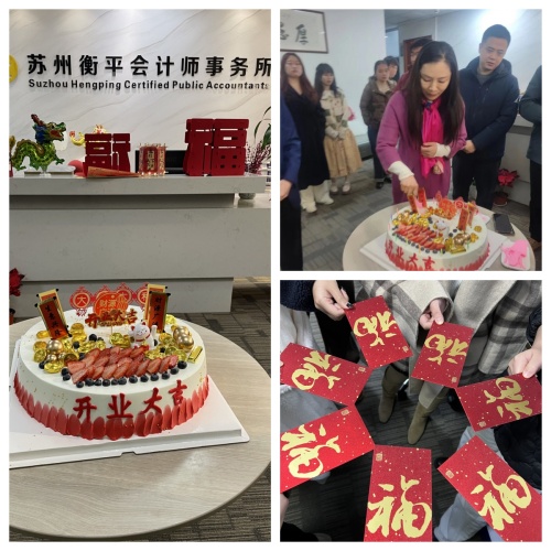 今天是龙年春节假期后第一个工作日,上午9时苏州衡平会计师事务所有限公司、苏州工业园区瑞华经济咨询有限公司举行了温馨的开工仪式。负责人钟琛发表开工致辞:祝愿新的一年龙行大运、万事兴“龙”,抓住新机遇、迎接新挑战、创造新成绩!公司所有同仁齐声祝福。大家开心地收获了火红的开工红包,还一起品尝了美味的庆贺蛋糕。