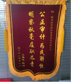 近日,衡平会计师事务所李秦组收到了一份特别的礼物:一面鲜艳的锦旗,上面“公正审计,为民解忧;明察秋毫、履职尽责”十六个大字熠熠生辉。