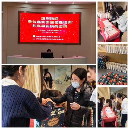 在国家大力扶持民营经济发展、出台系列财税利好政策的背景下,苏州衡平会计师事务所于2025年12月27日举办“老客户回馈培训会”,助力民企把握税收政策、用好政策红利实现新发展。衡平事务所秉持服务初心,连续多年以公益培训关心、支持老客户,进一步深化情谊与责任。
